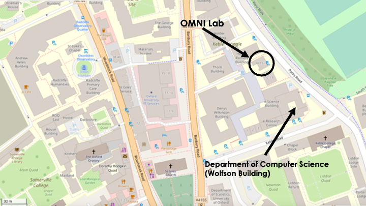 The OMNI Lab is housed just a few steps away from the Wolfson Buidlding of the Department of Computer Science (Oxford):